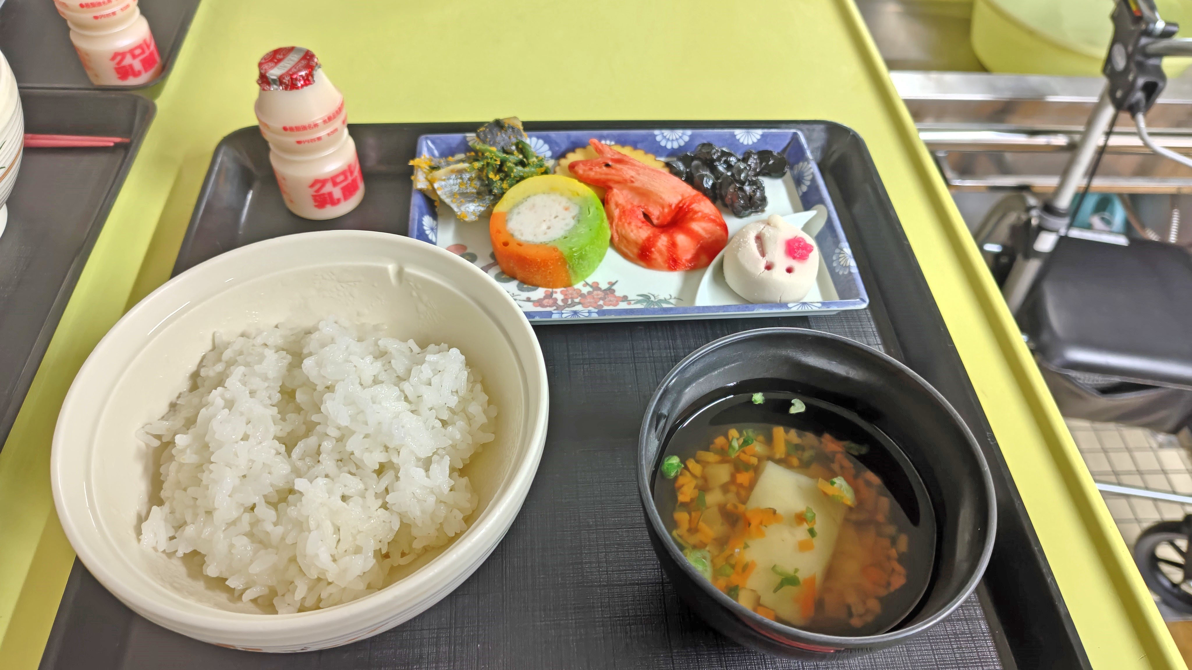 2026年の元日を迎え、入所者様とともに新年をお祝いいたしました。少し元日の朝食と昼食のお食事をご紹介いたします。